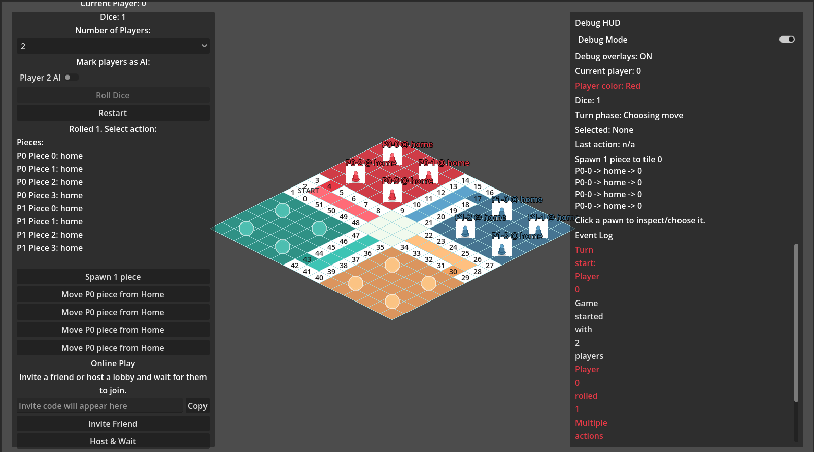 - Dice rolling and move validation implemented.